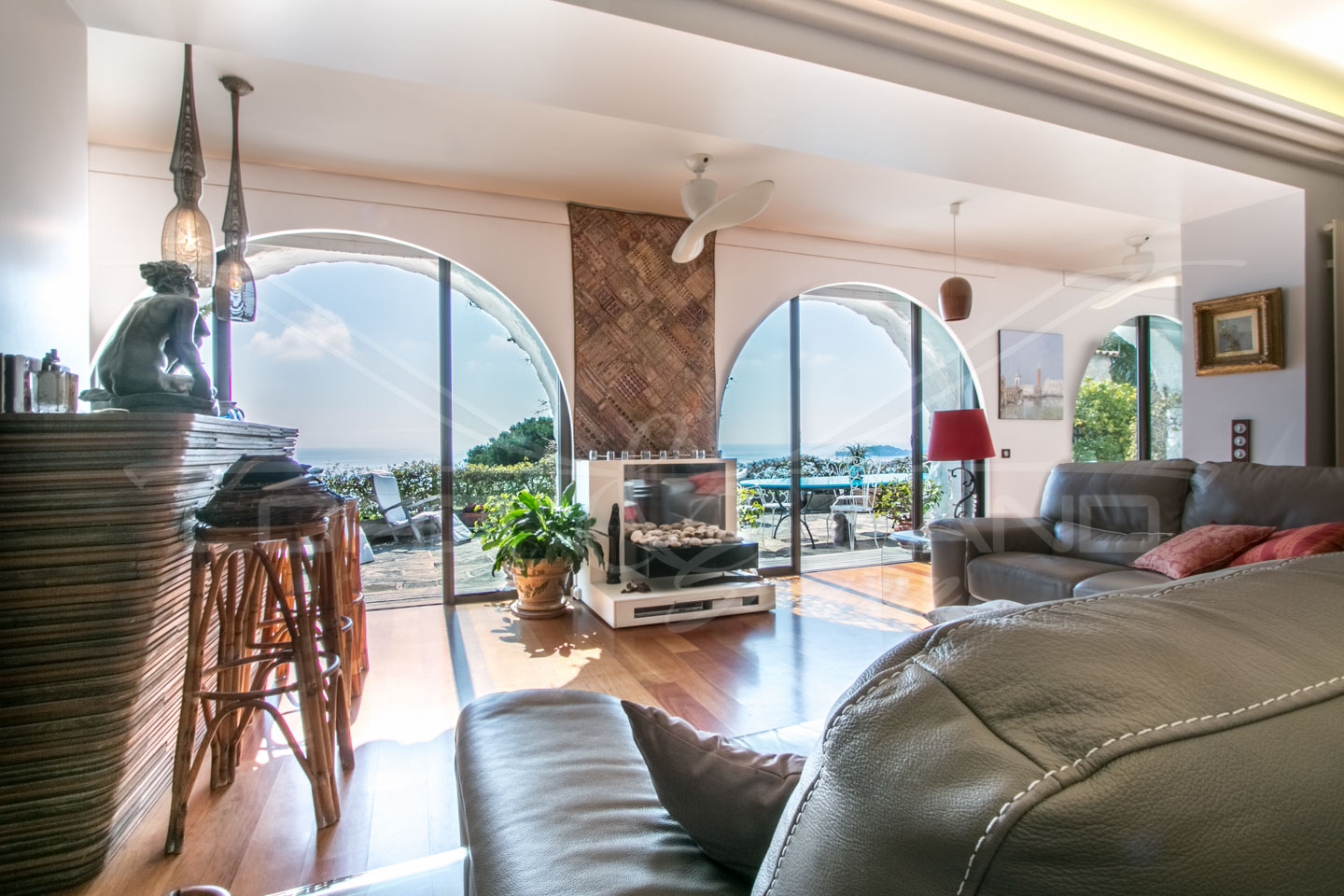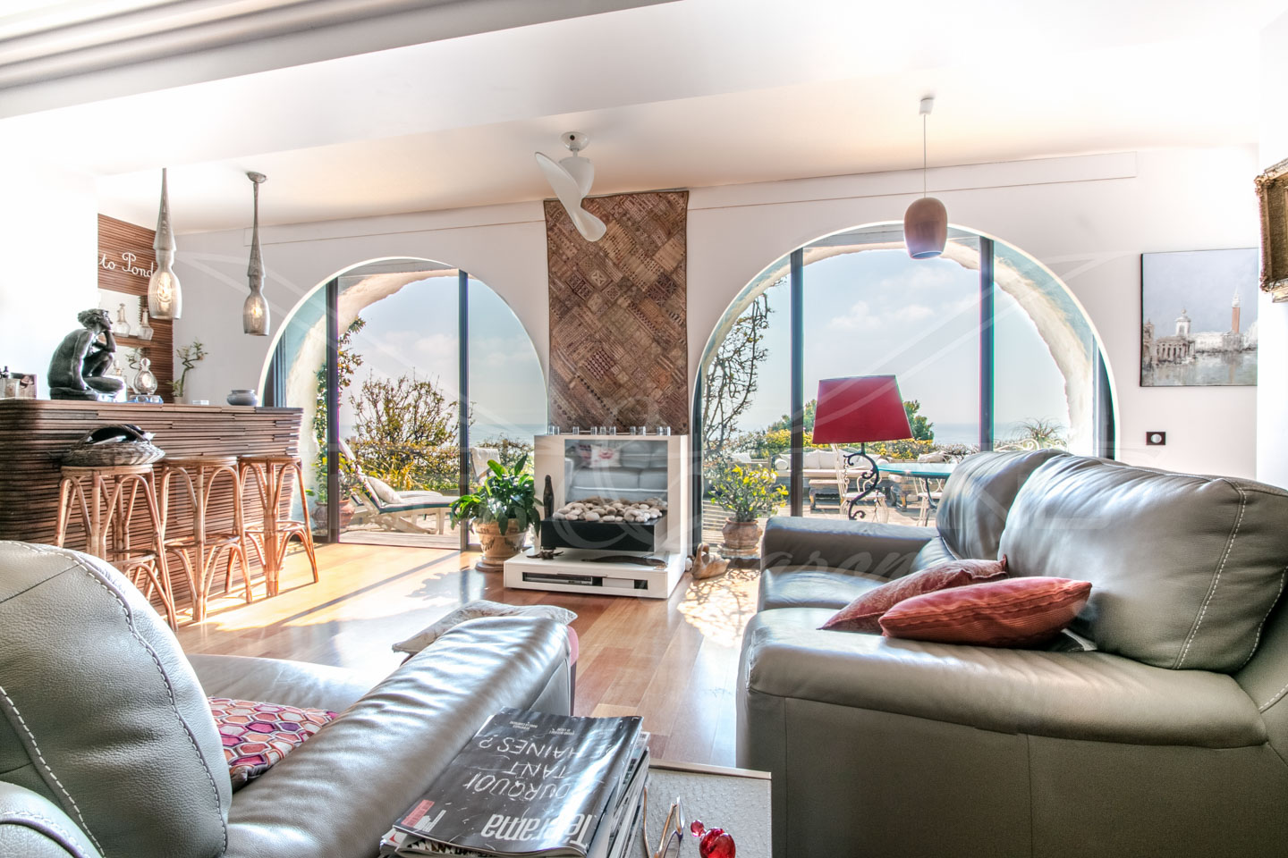 Located on the heights of the small town of Eze sur Mer in a very chic and residential area, the villa offers a panoramic view of the sea.