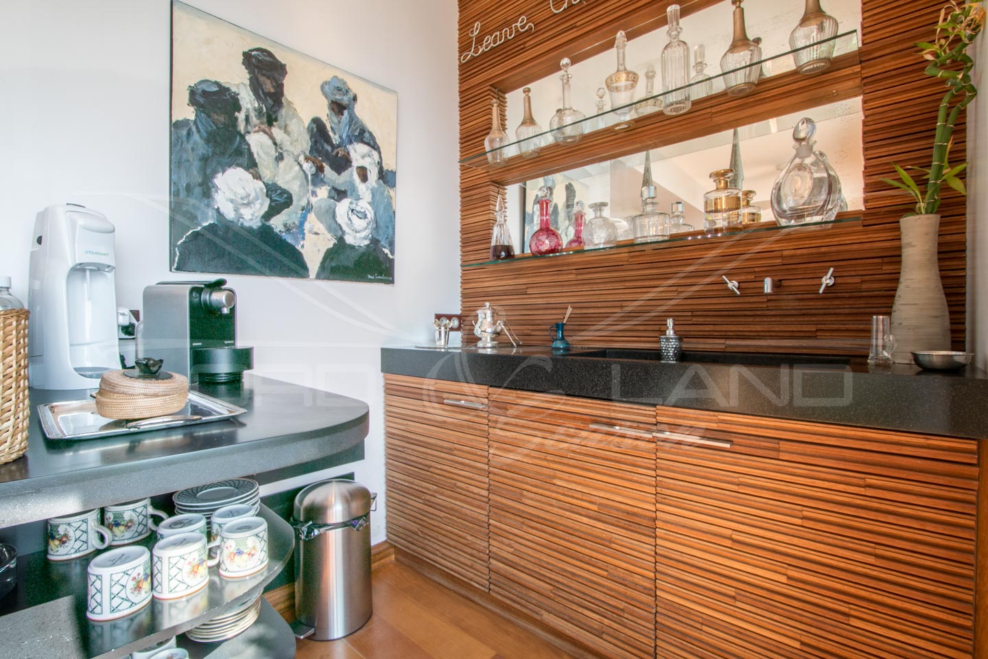 On the ground floor: there is a large living room opening onto a large terrace with a fantastic view of the bay of Eze, a dining area, an office, a bar, a spacious kitchen.