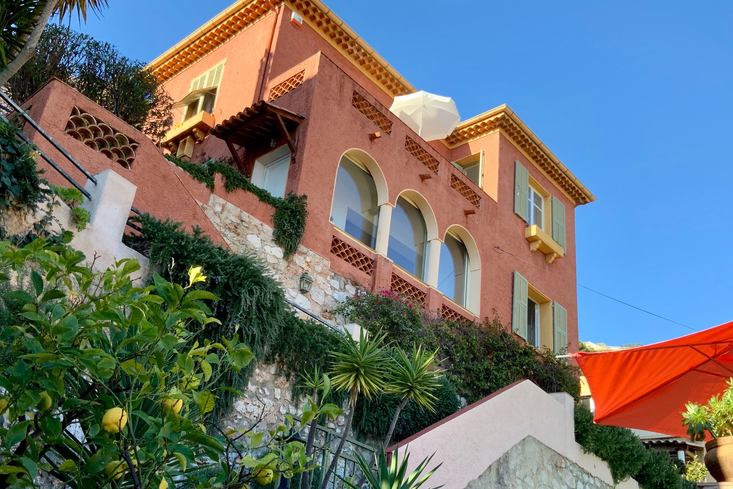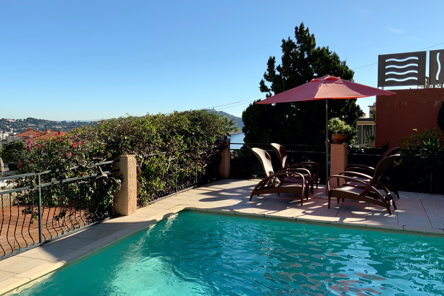 This pretty bourgeois house, located in a closed residence with gate, offers a magnificent view of the sea and the bay of Villefranche sur Mer.