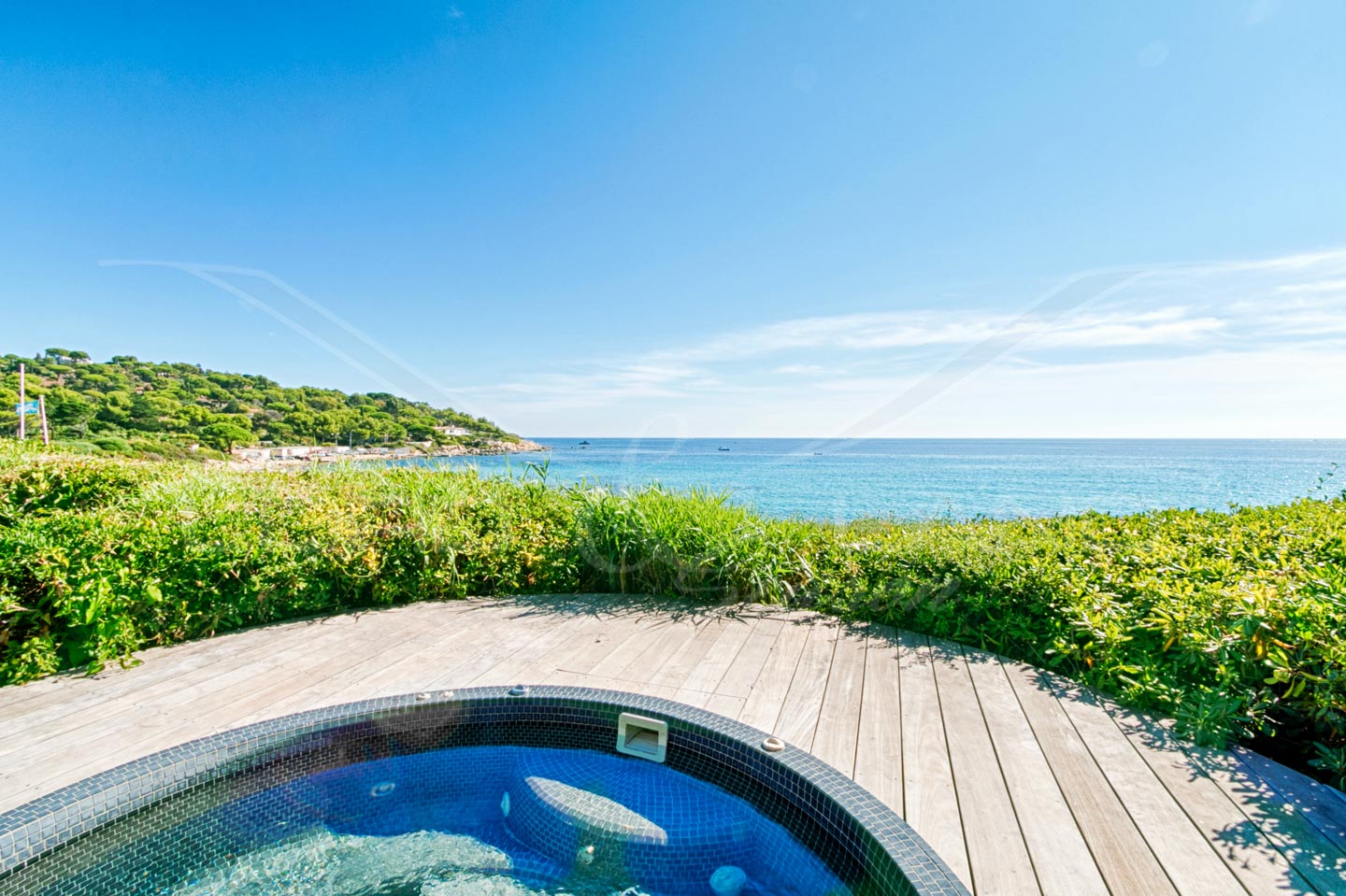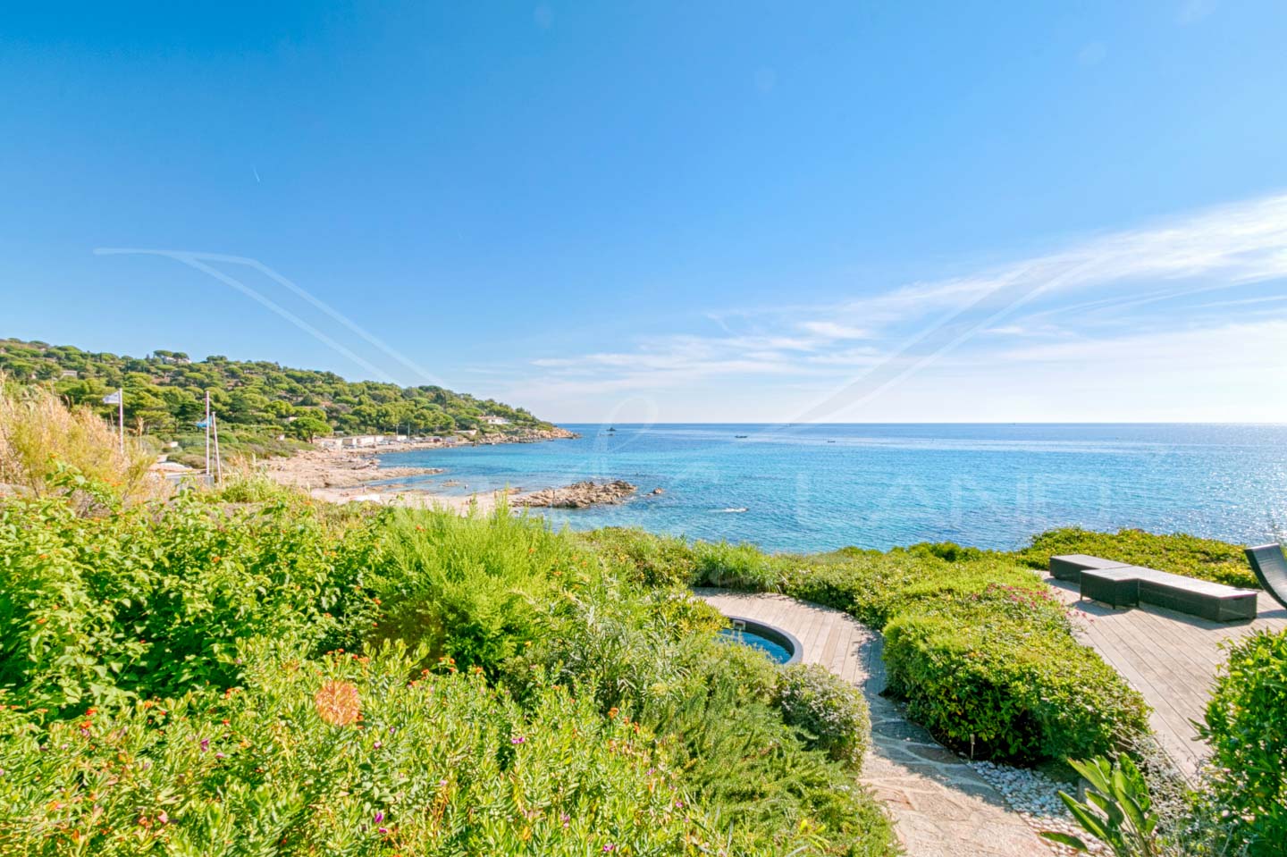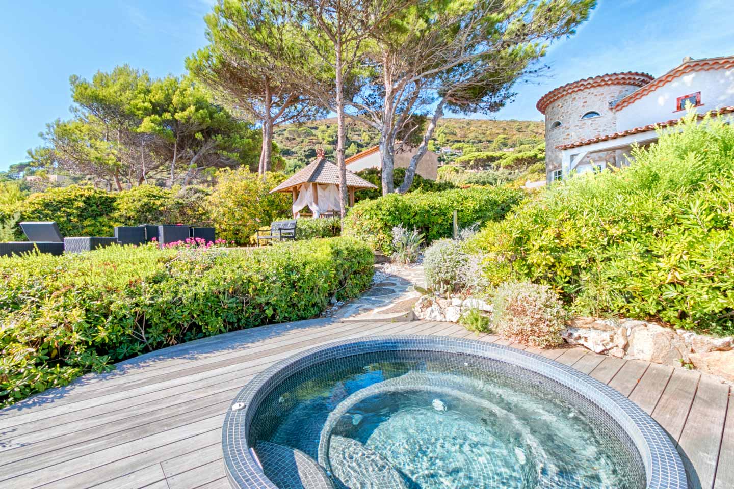 Villa with feet in the water in an unique situation, overlooking the beach of l’Escalet and the sea. Furnished with great taste, for 6 people, 100sqm on 1000sqm (10 acres) of land with vegetation and provencal tower. 2 terraces, one shaded. SPA, barbecue, parking for 3 cars and a beautiful Balinese daybed.