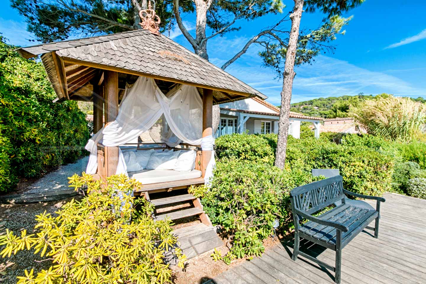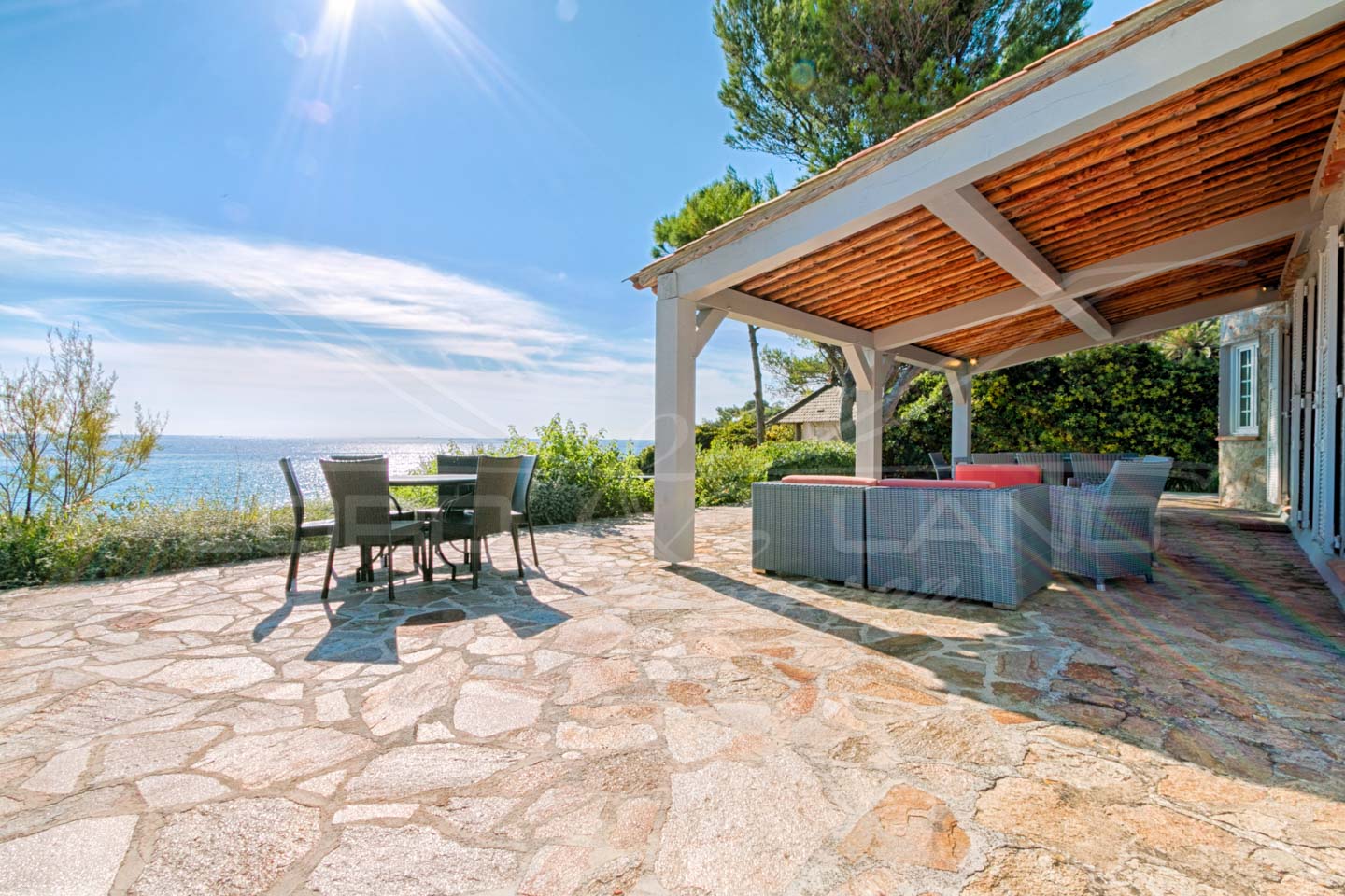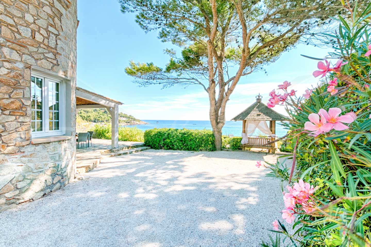 Villa with feet in the water in an unique situation, overlooking the beach of l’Escalet and the sea. Furnished with great taste, for 6 people, 100sqm on 1000sqm (10 acres) of land with vegetation and provencal tower. 2 terraces, one shaded. SPA, barbecue, parking for 3 cars and a beautiful Balinese daybed.