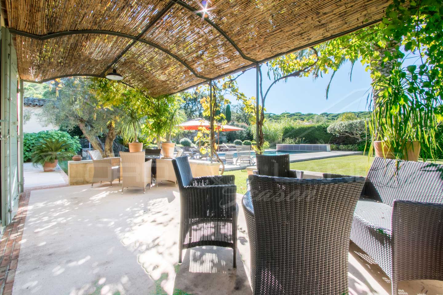 Located in front of les Parcs de St Tropez, the villa is only a few minutes walk from the beach of les Salins.